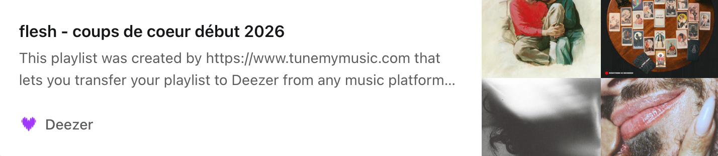 *désolé pour ma petite absence ces dernières semaines, j'ai eu quelques problèmes avec "ghost" qui est le site que j'utilise pour ma newsletter. J'ai été très touché par les quelques messages reçus pour me dire que les playlists flesh manquaient ;)
